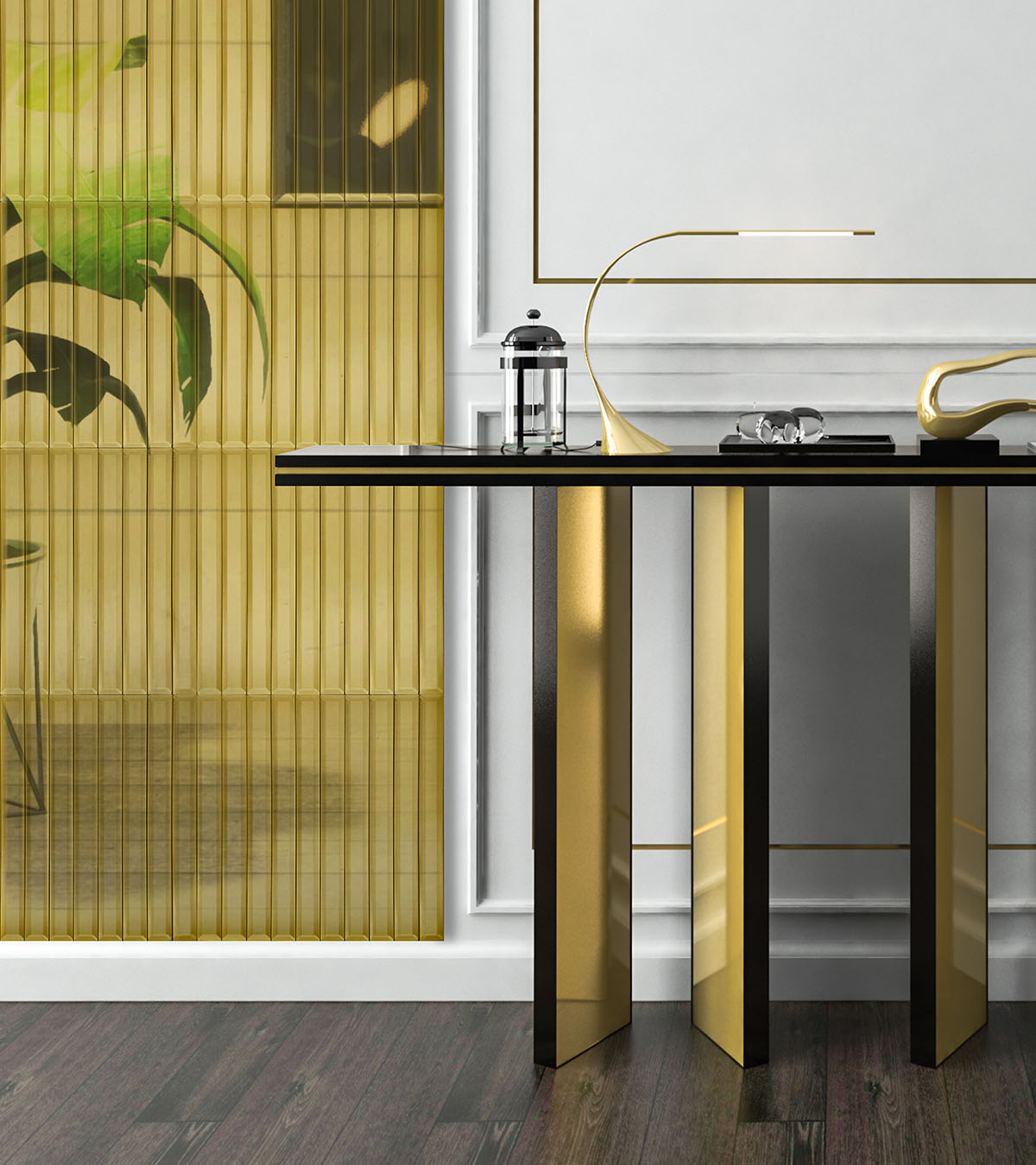 Mozaika wykonana ze szklanych prostokątów z efektem lustra. Poszczególne elementy mozaiki podklejone siatką nylonową w celu ułatwienia montażu na ścianie. Przeznaczona do stosowania na ścianach, wewnątrz pomieszczeń. Mozaika może być stosowana w strefach mokrych w łazience, np. w kabinach prysznicowych.