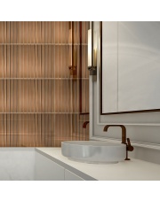 Mozaika wykonana ze szklanych prostokątów z efektem lustra. Poszczególne elementy mozaiki podklejone siatką nylonową w celu ułatwienia montażu na ścianie. Przeznaczona do stosowania na ścianach, wewnątrz pomieszczeń. Mozaika może być stosowana w strefach mokrych w łazience, np. w kabinach prysznicowych.